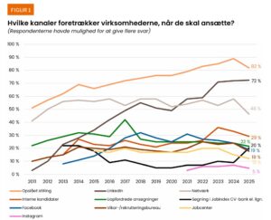 Jeg møder utrolig mange, uanset i hvilken sammenhæng, som ikke har de store forhåbninger om at komme i job via skriftlige ansøgninger. Hvorfor er det sådan? Det er dog statistisk set trods alt stadig den hyppigste kilde til job. I hvert fald hvis man ser på, hvordan chefer bedømmer, at de bruger de forskellige rekrutteringskanaler til at finde deres medarbejdere.