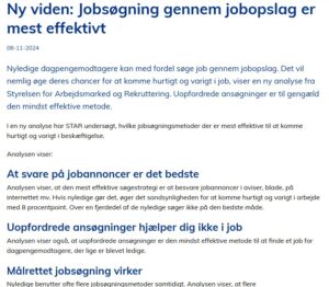 Også Styrelsen for Arbejdsmarked og Rekruttering (STAR), der blandt andet holder øje med, om beskæftigelsen stiger eller falder, og som arbejder på lovsættet til de nye jobcentre konkluderer, at der er størst chance for at få job via en skriftlig ansøgning til en opslået stilling.